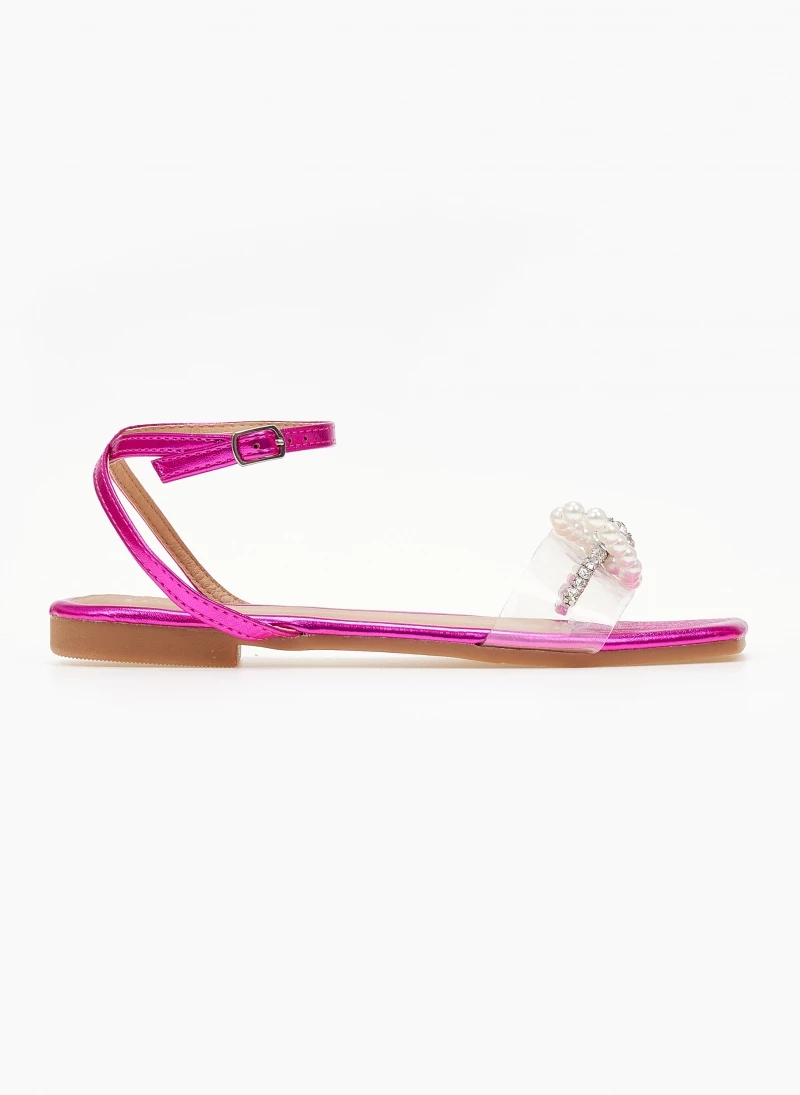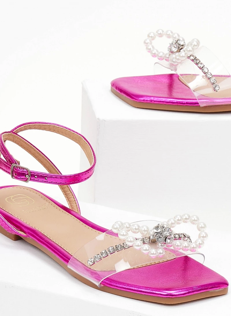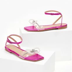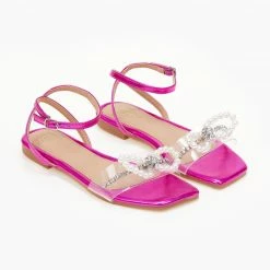 Προώθηση 💯 Εξοδος 🥰 The Fashion Project Σανδάλια διαφάνεια με φιόγκο και πέρλες – Φούξια 😀 🌟
