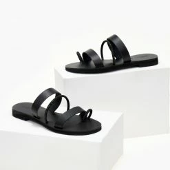 ESTIL δερμάτινα σανδάλια με τρείς φάσες. Έχουν λεπτή σειρά strass στή μεσαία φάσα και στο δάχτυλο. Γνήσιο δέρμα. ΄Ελληνικής κατασκευής.