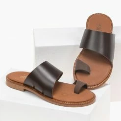 Συμφωνίες ⭐ Καλύτερη πώληση 🎁 Σανδάλια Estil δερμάτινα με περαστή φάσα – Ταμπά ❤️ ✔️