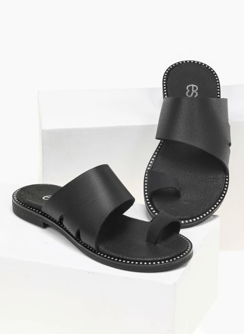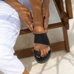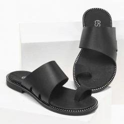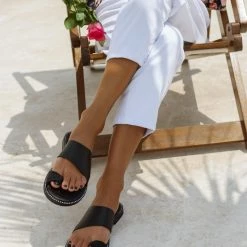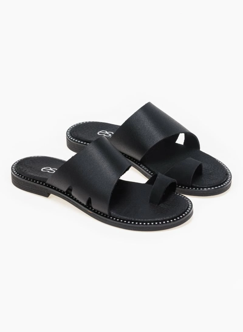 Προϋπολογισμός ❤️ Best Pirce 😀 The Fashion Project Σανδάλια Estil δερμάτινα με λοξή φάσα – Μαύρο 🧨 ❤️