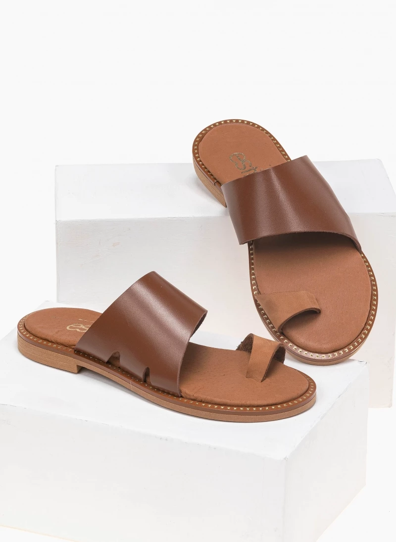 Το φθηνότερο 👍 Το φθηνότερο 🎉 Σανδάλια Estil δερμάτινα με φάσα και λουράκι – Κάμελ ⌛ 👍