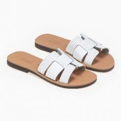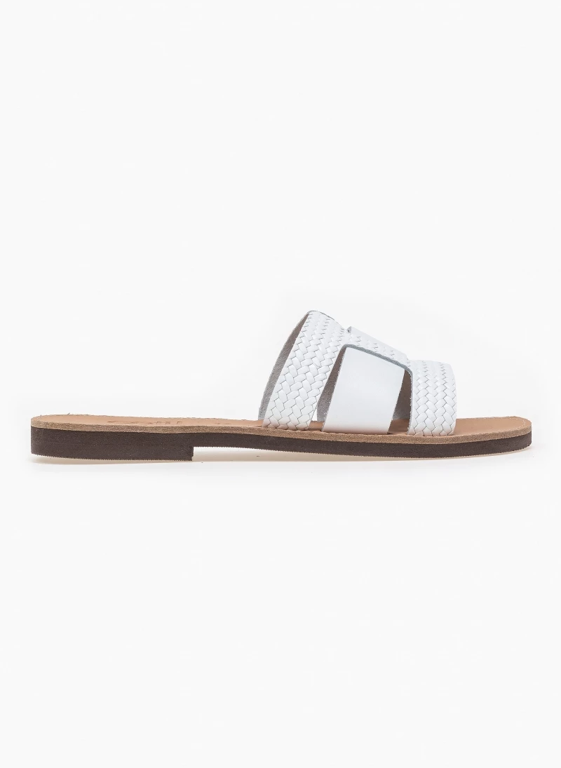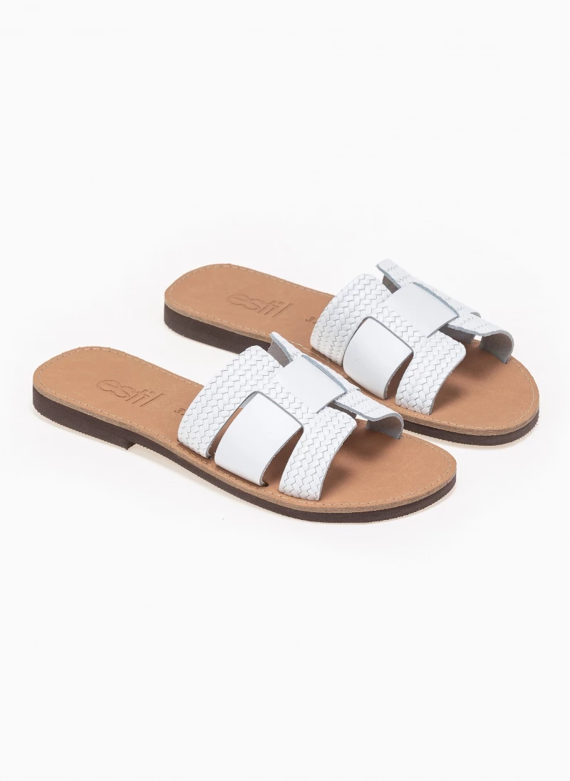 Η καλύτερη συμφωνία ⌛ Νέος 🎉 Πέδιλα δερμάτινα ίσια με Pattern Tfp – Λευκό 🌟 🔔