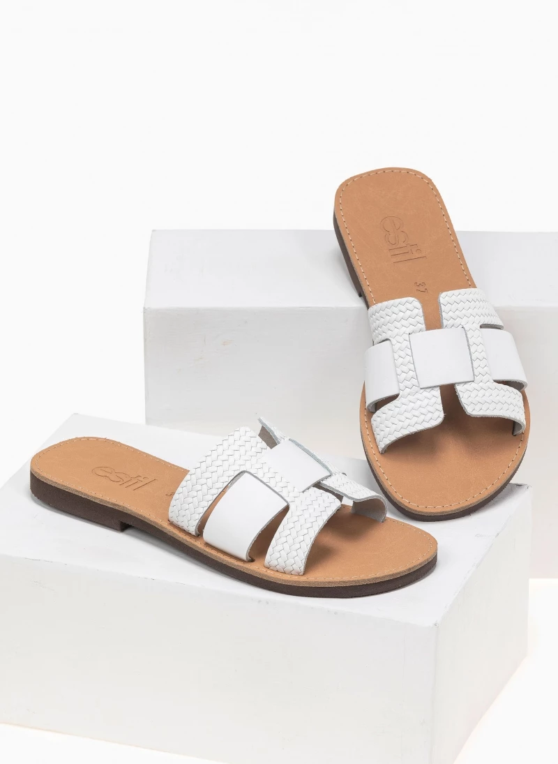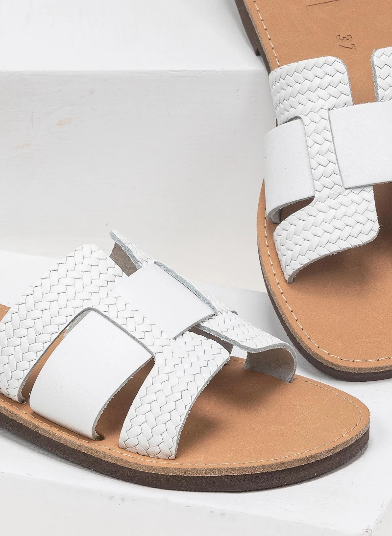 Estiil δερμάτινα σανδάλια με pattern πλεκτό. Ελληνικής κατασκευής, χειροποίητα.