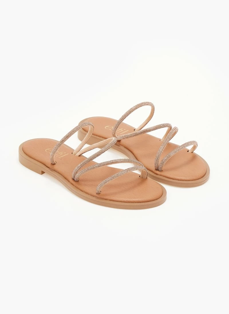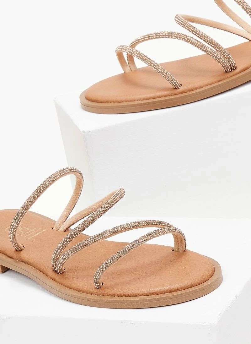 Σανδάλια Estil με λεπτά strass λουράκια. Έχουν μαλακό πάτο με ενίσχυση. Ελληνικής κατασκευής.