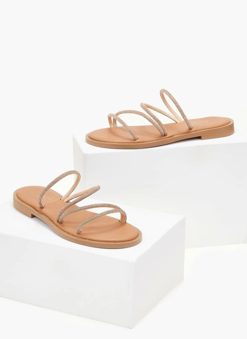Καλύτερη πώληση 💯 Το φθηνότερο 🎁 The Fashion Project Σανδάλια Estil με Strass λουράκια – Χαλκός 🎁 🧨