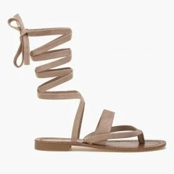 Suede φλατ σανδάλια με λεπτά λουράκια. Δένουν στη γάμπα. Έχουν μαλακή σόλα από λάστιχο.