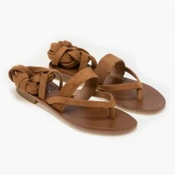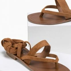 Suede φλατ σανδάλια με λεπτά λουράκια. Δένουν στη γάμπα. Έχουν μαλακή σόλα από λάστιχο.