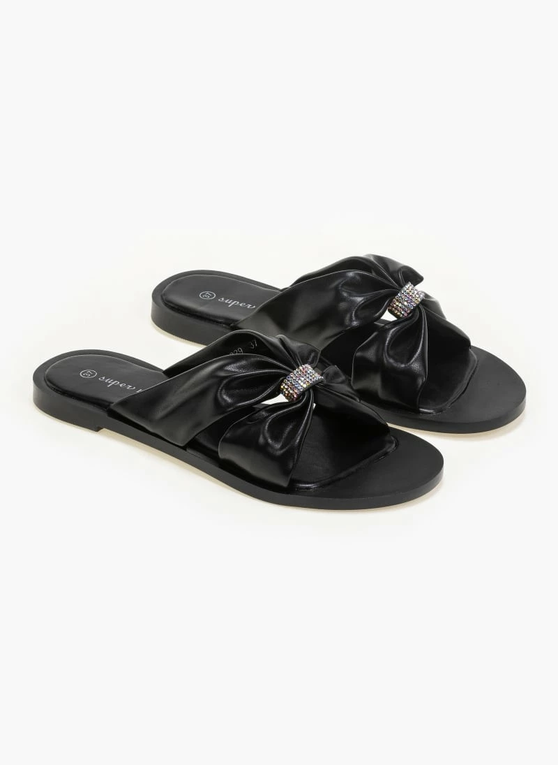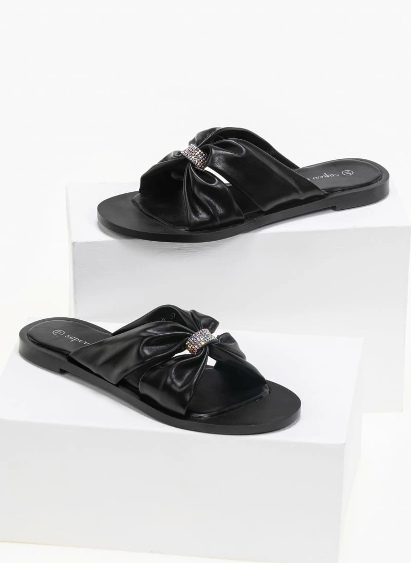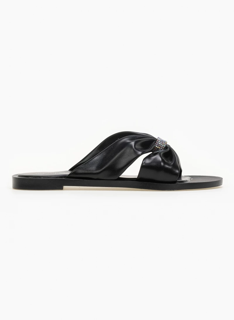 Σανδάλια φλατ με μαλακές τσαλακωτές φάσες και strass διακοσμητικό. Η σόλα είναι μαλακή από λάστιχο.