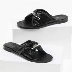 Προϋπολογισμός 🤩 Νέος ⭐ The Fashion Project Σανδάλια φλατ με Strass διακοσμητικό – Μαύρο 🤩 ⭐