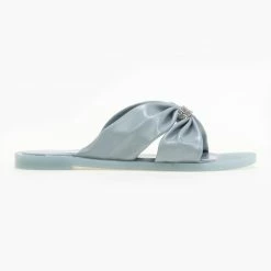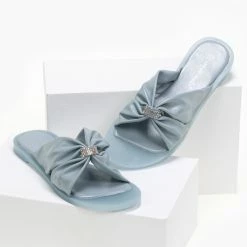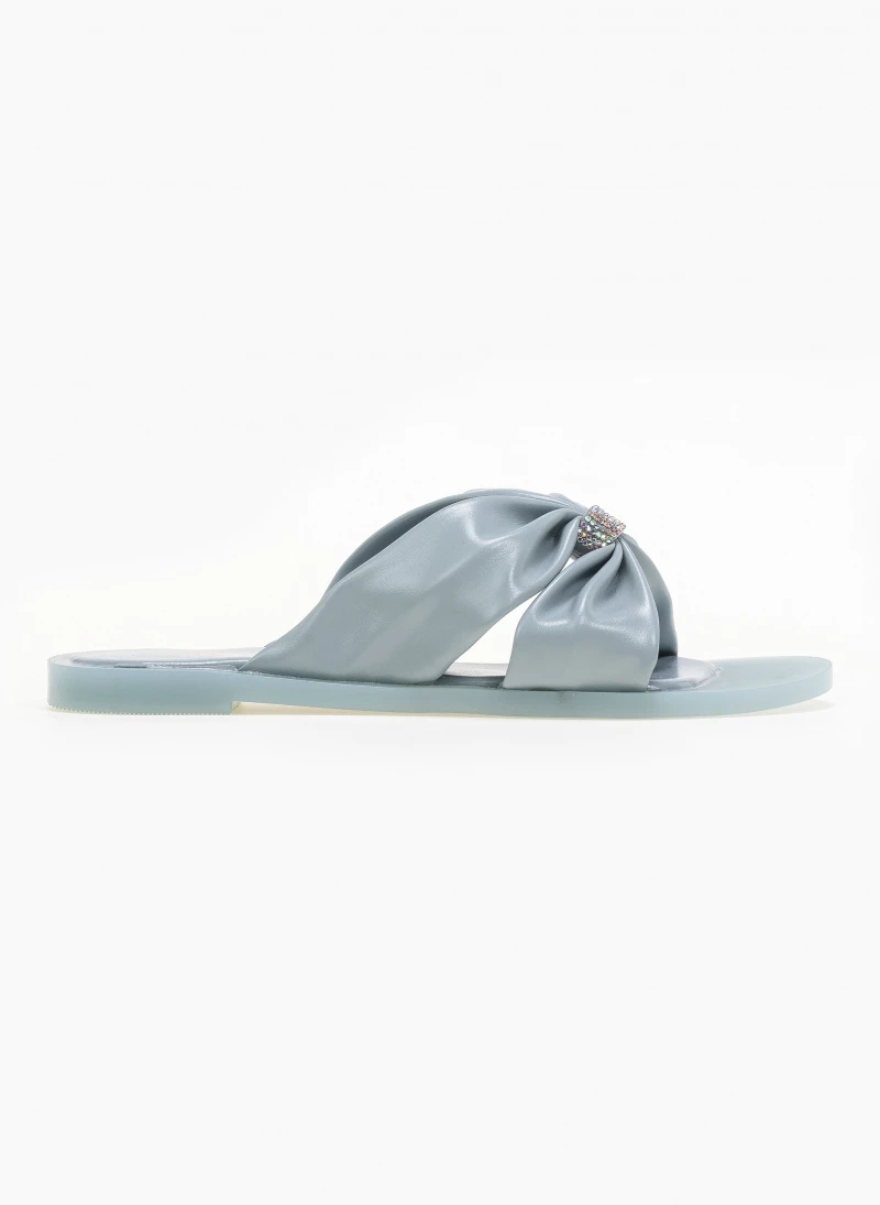 Σανδάλια φλατ με μαλακές τσαλακωτές φάσες και strass διακοσμητικό. Η σόλα είναι μαλακή από λάστιχο.