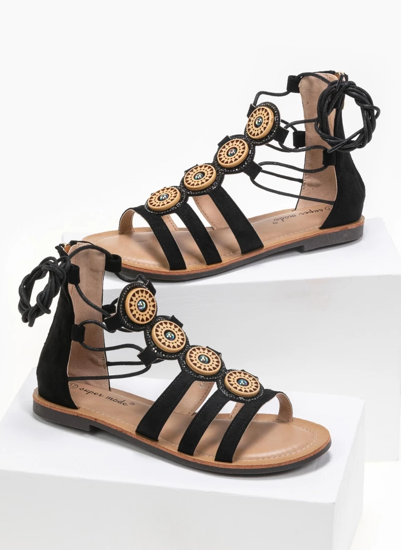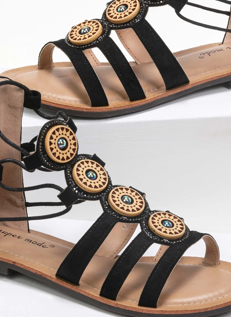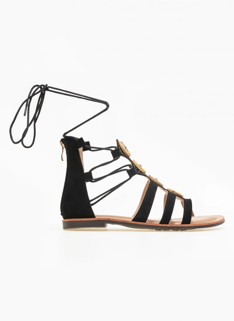Suede lace up σανδάλια με πέτρες. Ο πάτος είναι μαλακός με ενίσχυση. Έχουν φερμουάρ στο πίσω μέρος.