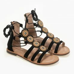 Προώθηση 💯 Καλύτερες κριτικές για ⭐ The Fashion Project Σανδάλια Lace Up με πέτρες – Μαύρο 🔔 ❤️