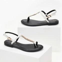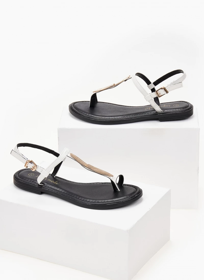 Best Pirce 👍 Αγορά ❤️ The Fashion Project Σανδάλια με κάθετο λουράκι και διακοσμητικό – Λευκό ✔️ ✔️