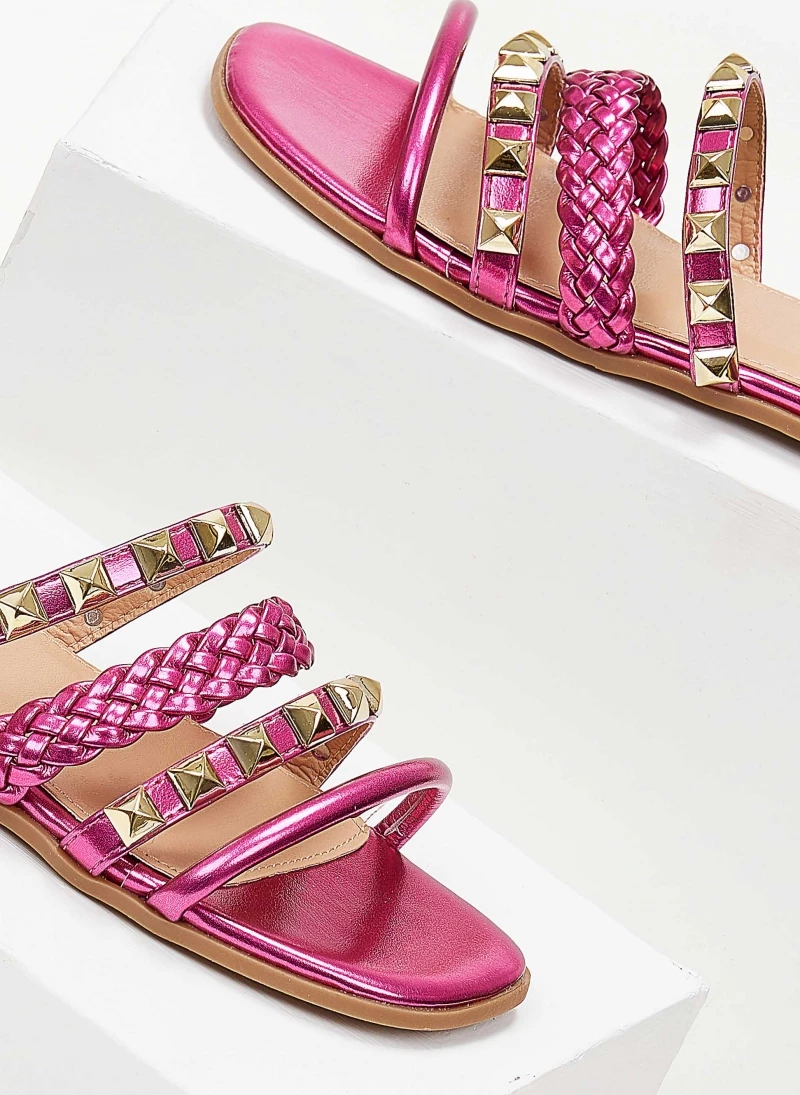 Εκπτωση ⌛ ΧΟΝΔΡΙΚΟ ΕΜΠΟΡΙΟ 🤩 The Fashion Project Σανδάλια με λουράκια σε μεταλλικά χρώματα – Φούξια 😉 😀