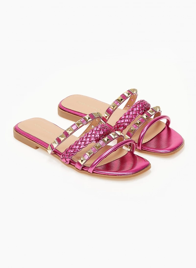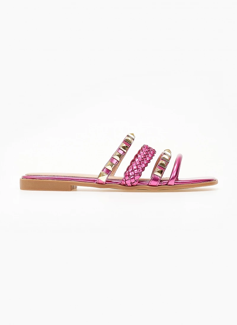 Σανδάλια σε μεταλλικά χρώματα. Έχουν πλεκτό λουράκι και τρουκς. Η σόλα είναι από λάστιχο.
