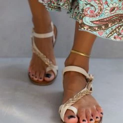 Συμφωνίες 🛒 Προώθηση 🎉 Σανδάλια Estil δερμάτινα με ανάγλυφο σχέδιο ψάθα – Λευκό ⭐ ✨