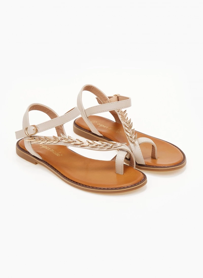 Σανδάλια με δέσιμο στο ύψος του αστραγάλου. Έχουν λοξή φάσα με διακοσμητικό μεταλλικά φύλλα.
