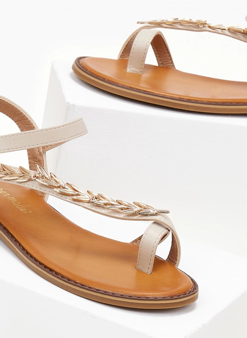 Το φθηνότερο ❤️ Προώθηση 🧨 The Fashion Project Σανδάλια με μεταλλικά φύλλα – Μπεζ 😀 🔥