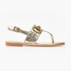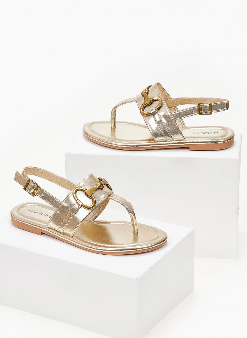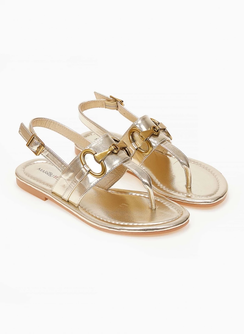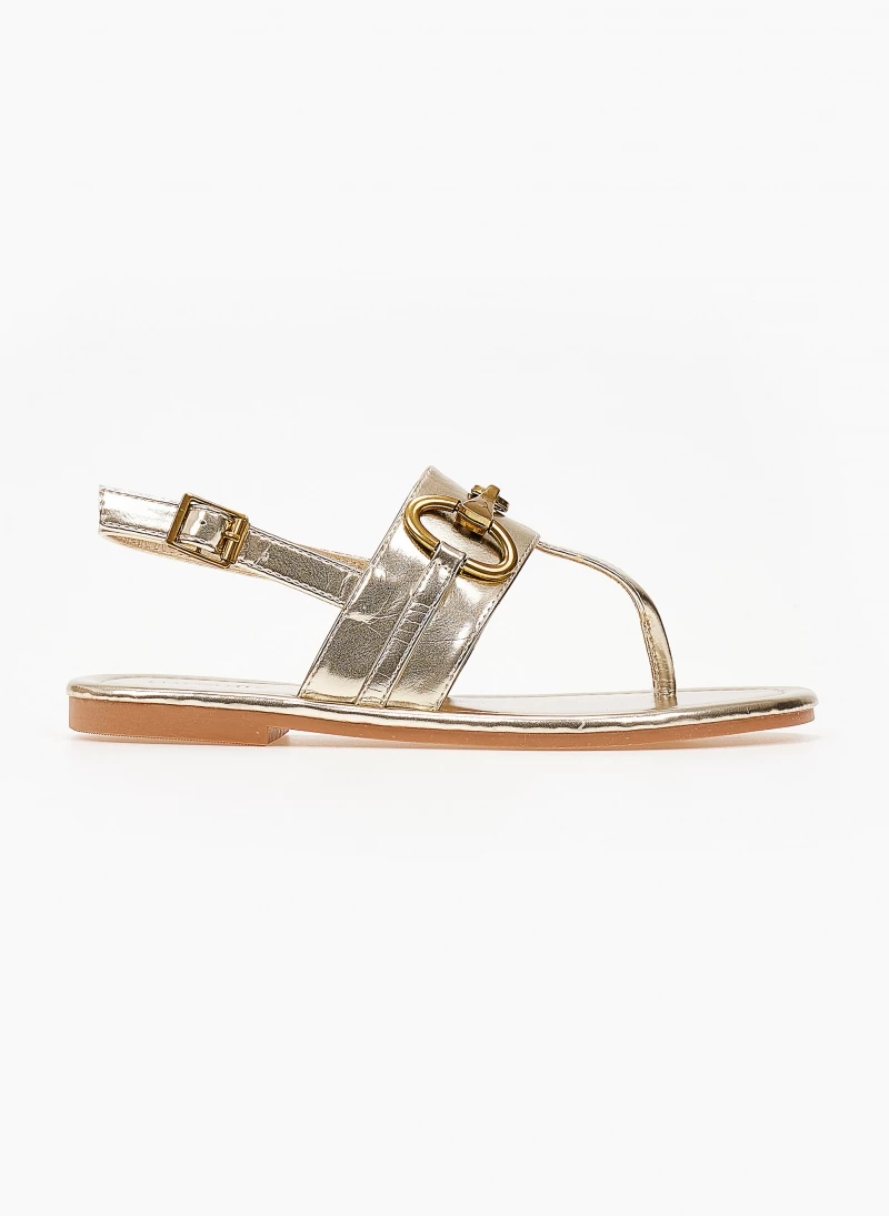Σανδάλια με μεταλλικό στοιχείο στη φάσα.Δένουν στο πλάι με λουράκι.