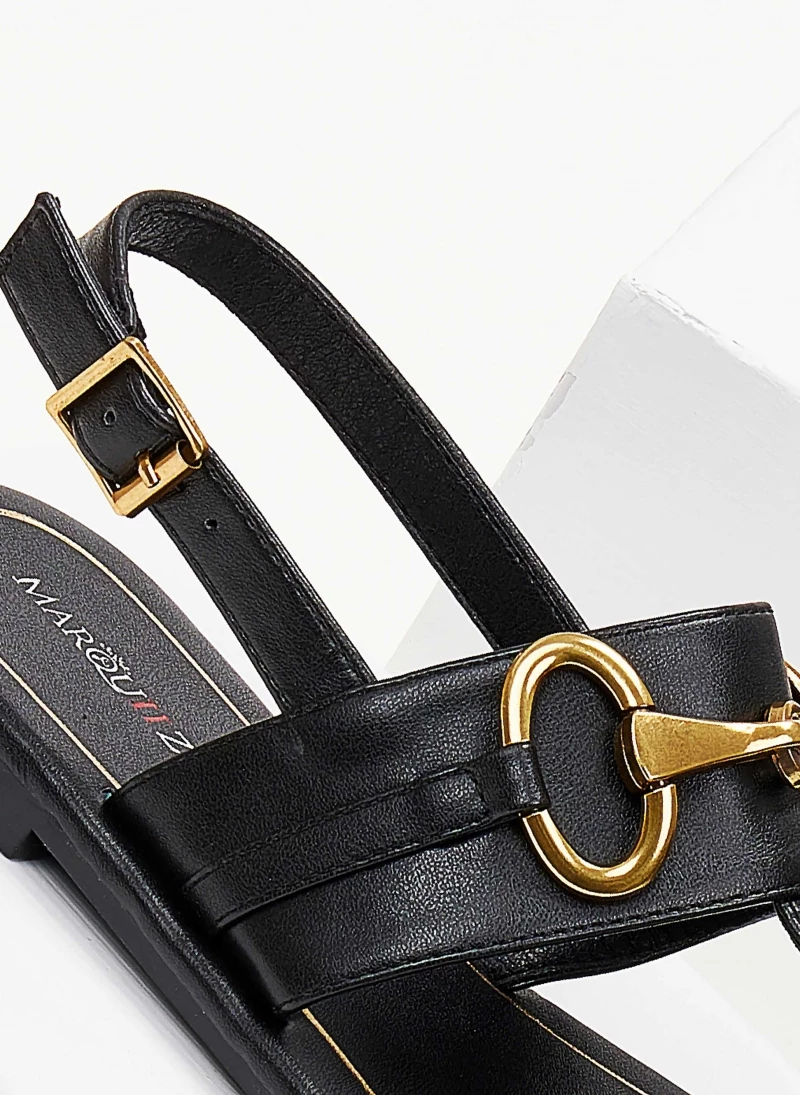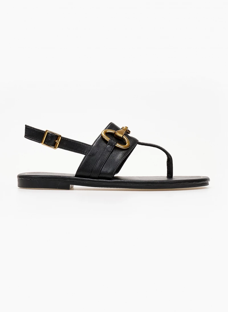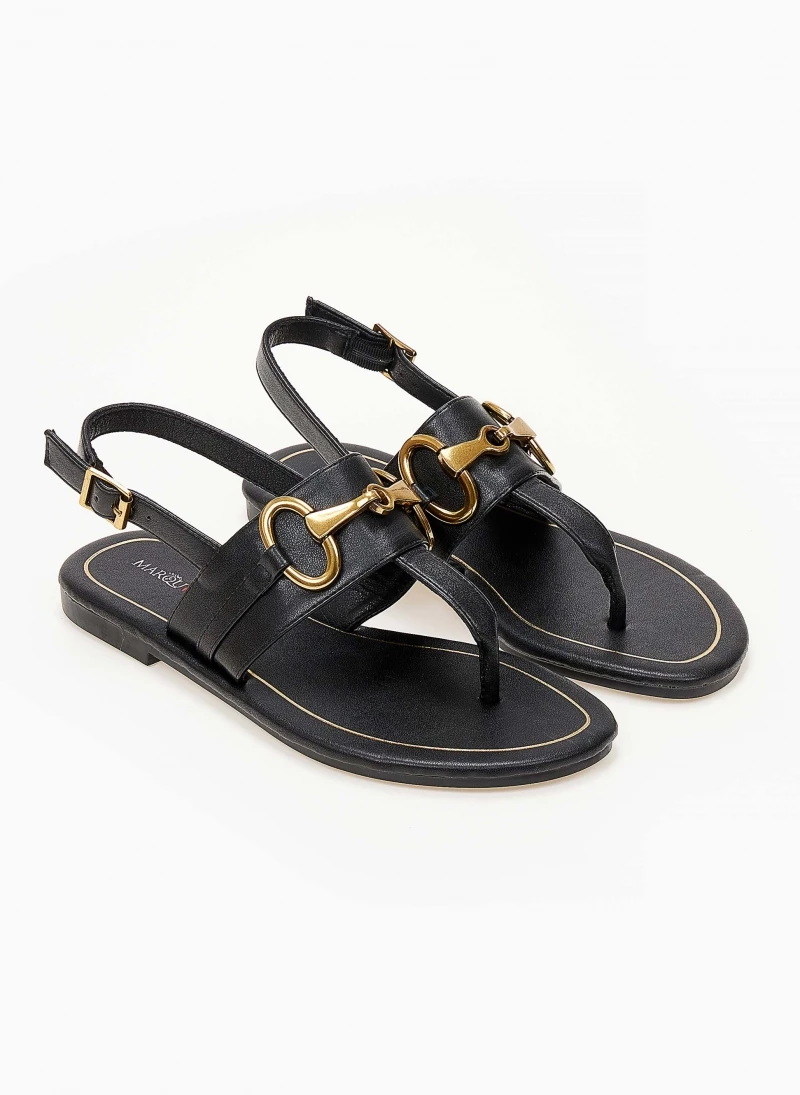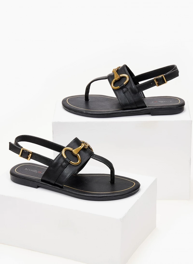Σανδάλια με μεταλλικό στοιχείο στη φάσα.Δένουν στο πλάι με λουράκι.