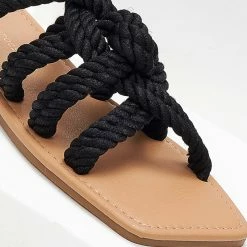 Προώθηση 😉 Η καλύτερη συμφωνία ✔️ The Fashion Project Σανδάλια με πλεγμένα σχοίνινα λουράκια – Μαύρο 🎉 👏
