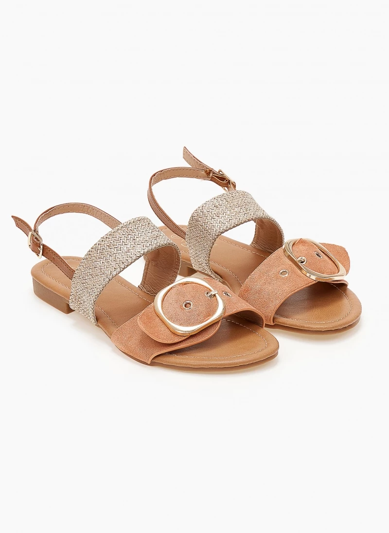Το φθηνότερο 🤩 Φτηνός 🔔 Σανδάλια Estil δερμάτινα με σχέδιο ψάθα – Χρυσό 🎁 ✨