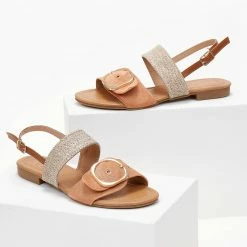 Το φθηνότερο 👍 Το φθηνότερο 🎉 Σανδάλια Estil δερμάτινα με φάσα και λουράκι – Κάμελ ⌛ 👍