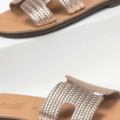 Πολύ καλή προσφορά 🛒 Αγορά 🥰 Σανδάλια Estil δερμάτινα με ανάγλυφο σχέδιο – Χαλκός ⌛ ✨