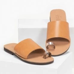 Το φθηνότερο 👍 Το φθηνότερο 🎉 Σανδάλια Estil δερμάτινα με φάσα και λουράκι – Κάμελ ⌛ 👍